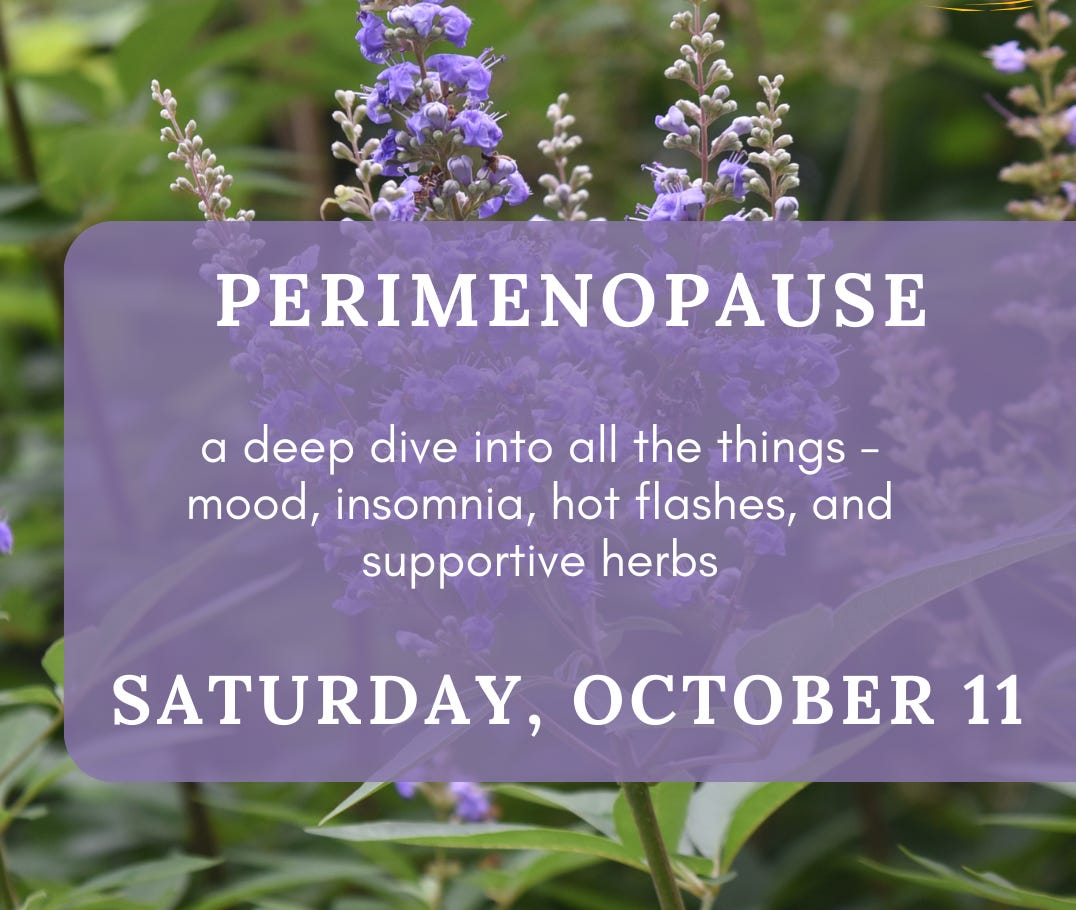 As a reminder, I am planning to host a workshop at my farm in Berea this Saturday on perimenopause and herbal support. Here’s the plan: